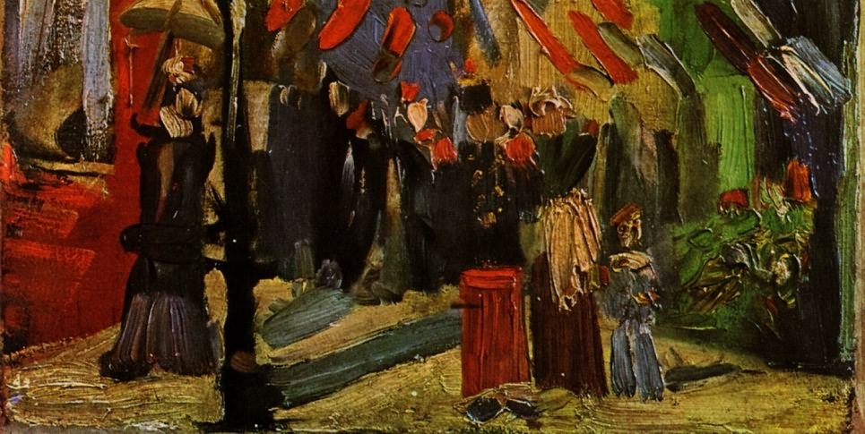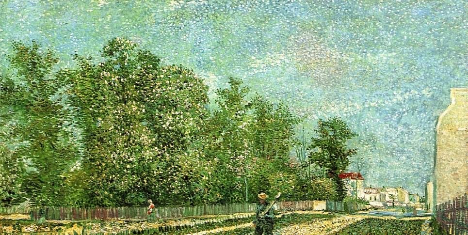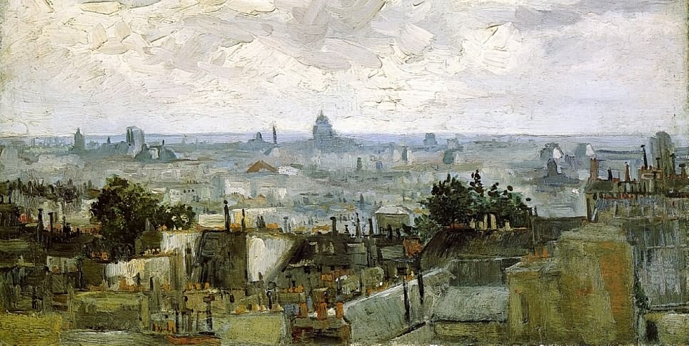 1886年2月底,梵高同提奥一同前往巴黎。巴黎之行成为梵高艺术上的转折点,在那里,他接触到早期印象画派艺术,结识了图鲁兹一劳特累克、高更、毕沙罗、修拉和塞尚,并参加印象主义画家们的集会,从马奈、莫奈、雷诺阿的光色变幻的色彩价值中受到启发,促使他改变自己原先的阴郁风格。他发现,他唯一深爱的东西就是色彩,辉煌的、未经调和的色彩。他手中的色彩特征,与印象主义者们的色彩根本不同。即使他运用印象主义者的技法,但由于他对于人和自然特有的观察能力,因而得出的结论也具有非凡的个性。