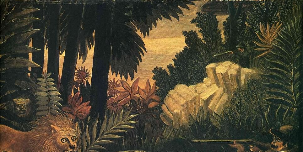《森林组画》由一批描绘异国风情的热带丛林的画所组成。这些画涉及了人类的存在、自然的奥秘、人与自然的关系等问题,展示了生命中最神奇、最隐秘、最难以捉摸的梦幻般的东西。在丛林中,树干、花朵、叶子、果实各具特色,人和动物自然地隐约其中,动物看上去有人的灵性,人看上去又像动物,植物也富有生命力。这些画都充满了生机,茂密的、占满了画面的森林,奇异的花和果实,可爱的、富有灵性的动物,神秘的人物,构成了一幅幅生机勃勃的丛林奇景图,引起人们对热带丛林的遐想和向往。最神奇的是他没有去过真正的丛林,无法亲自欣赏和体验那里的景色和气息。然而他笔下的丛林却是那麼富有生机和魔力,栩栩如生。在他超凡的想象力之下,丛林被描绘成如世外桃源的仙境一般,亦真亦幻。画面的色调明快,以深色的绿色调为主,只是树叶就用了20多种深浅不一的绿色。