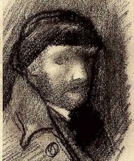 信中对五官、颜色、感慨的描述很像观相术的语言,而且重点突出、简约生动。"乱糟糟的久未修剪,看上去令人沮丧的"胡子是他惯有的身份特征,胡子的颜色——"很红"、"桔红"——就像是他在画作上签署的姓名和日期。虽然没有提到画布,但是在重要的细节描述上却提到了与作画的职业有关的另外两样东西。在这封信里,人物的衣服被说成是一件农民的短外套,这就把梵高的身份又一次解释为乡村画家,而"颜色样样俱全,都是纯色"的调色板则再一次说明了他对现代技法的追求。