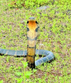 眼睛王蛇是最长的毒蛇,长度约为3.7米,个别可达5.5米。它的毒液剧毒无比:一次叮咬所释放的剂量足以杀死一头大象或20个人。眼睛王蛇在前进时1/3的身体可以离开地面,好比一个身高1.8米的人。它们在攻击时,环绕头部的冠展开来恐吓敌人。眼镜王蛇生活在菲律宾、马来西亚、中国南方、缅甸和马来西亚半岛。