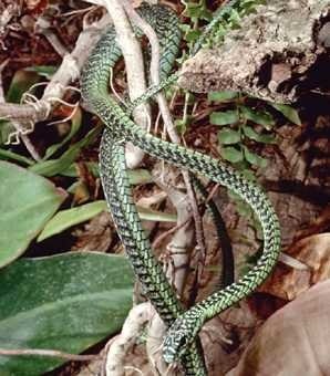 的毒性比眼镜蛇更强,然而只有当人们触摸到它时他才会攻击人类。这种树栖蛇种生活在非洲南部的丛林中,平均长度约为1.5米。