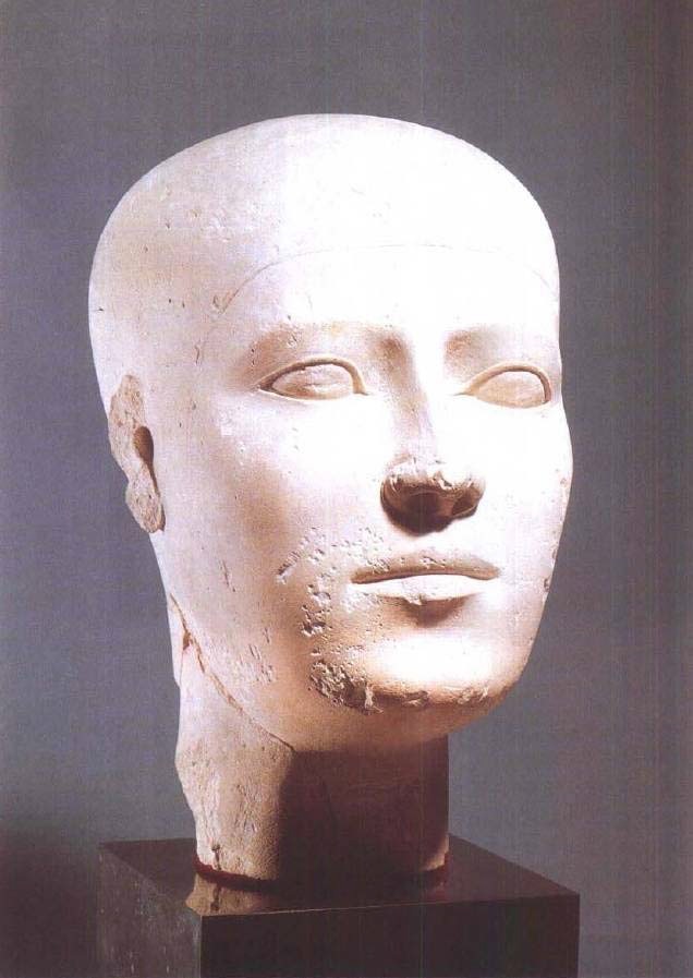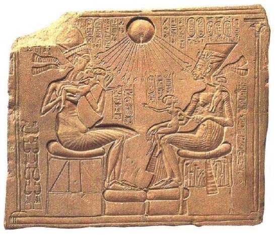 只有一个人曾经动摇过埃及风格的铁门槛。他是第十八王朝的一个国王,第十八王朝在所谓“新王国”时期,新王国是在埃及遭到严重入侵之后建立的。这个国王叫阿米诺菲斯四世(Amenophis IV),是个异端派,他打破了许多有古老传统的神圣习俗。他不愿意对他民族中的许多怪模怪样的神顶礼膜拜。在他看来,只有一个神至高无上,即阿顿(Aton)。他崇拜阿顿,将其表现为太阳形状。他仿照神的名字把自己叫做阿克纳顿(Akhnaton),还把自己的宫廷迁到其他神的祭司的势力范围以外,现称埃尔-阿玛尔那(El-Amarna)的地方。