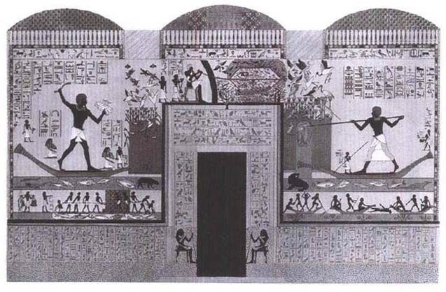 几何形式的规整和对自然的犀利观察,将二者结合起来乃是一切埃及艺术的特点。我们从装饰墓室墙壁的浮雕和绘画中可以很好地考察这一点。不错,“装饰”这个词可能很难用于这种艺术,因为除了死者的灵魂之外,这种艺术无意给别人观看。事实上,那些作品也不想让人欣赏,它们也是意在“使人生存”。在残忍的上古时期曾经有个惯例,有权有势的人物死后,让他的仆役和奴隶陪葬。牺牲他们为的是让死者能带着一批合适的随从进入冥界。后来,这些恐怖行为不是被认为太残忍,就是被认为太奢侈,于是艺术就来帮忙,把图像献给人间的伟大人物,以此代替活生生的仆役。在埃及陵墓中发现的图画和模型就跟这种想法有关,为的是让灵魂在另一个世界有得力的伙伴。