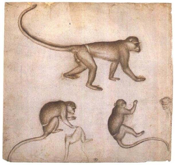 国际式风格的艺术家在描绘周围世界时也是这样观察事物,这样爱好精巧、美好的事物。中世纪原来习惯于给历书做插图,画逐月变化的工作,画播种,画狩猎,画收割。一个富有的勃艮第公爵向林堡(Limbourg)弟兄的作坊里定制的一本祈祷书中附有历书(图144),它显示了这些描绘现实生活的图画跟以往相比在生动性和观察力方面取得了多大进展,甚至可以跟图140《玛丽女王的诗篇》的时代比较一下。这幅细密画表现的是朝臣们每年春天的节庆。他们身着华丽的盛装,头戴枝叶和花朵编的花冠,骑着马穿过树林。我们可以看出画家多么欣赏服装时髦的漂亮的少女形象,他多么乐于把那艳丽的节日盛典全部画进册页。我们又可能想起乔叟和他笔下的香客们;因为我们的艺术家也下了苦功去区分不同类型的人,技巧高超得使我们仿佛听见他们在谈话。这样一幅画,大概是用放大镜画的,应该以同样的喜爱之情仔细加以研究。艺术家集合在画页中的美妙的细节相互结合,形成一个画面,看起来几乎像一个现实生活场面。我们说几乎像,而不是完全像;那是因为,如果注意到艺术家使用了一道可说是树木组成的幕布遮住背景,越过树木我们看见一座巨大的城堡的屋顶,我们就会明白他给予我们的并不是一个来自现实的自然场面。他的艺术跟以前画家使用的那种象征式叙述故事的手法似乎已有天渊之别,以致需要用心才能看出连他也不能表现出人物活动的空间来,他造成了真实感主要还是由于他仔细观察细节。他的树木并不是真实的写生树木,而是一排象征性的树木,一棵挨着一棵,甚至人物的面部多少也还是出自同一个可爱的模式。但是他喜爱周围现实生活里的一切美好和快乐,这表明他对于绘画目的的看法跟中世纪早期的艺术家大不相同。兴趣已经逐渐转移了,已经从以最佳方式尽可能清楚、尽可能动人地叙述宗教故事转移到以最忠实的方法去表现自然的一角。我们已经看到两种理想并不一定抵触。当然有可能把这新掌握的关于自然的知识用于宗教艺术,像14世纪艺术名家所做的那样,也像后世的艺术名家将要做的那样;但是,对于艺术家说来,现在的任务毕竟已经跟过去不同了。过去,学习古代表现宗教故事里的主要人物的程式,然后把那些知识用于不断更新的组合之中,就是充分的训练了。现在,艺术家的工作包括了一项不同的技艺。他必须能作写生画稿,而且能把它们转绘到他的画上。他开始使用速写本,积蓄一批珍奇美丽的动植物速写。当初马修·帕里斯描绘大象(见197页,图132)还是偶然的例外之举,可是很快就成为规矩了。图145是意大利北部艺术家皮萨内洛(Pisanello, 1397-1455?)在林堡弟兄细密画之后不过二十多年画的素描,这样的画表明了新规矩是怎样引导艺术家以浓厚的兴趣去研究活生生的动物。观看艺术作品的大众开始根据描绘自然的技艺,根据艺术家设法画进画面中的大量引人入胜的细节,去评价艺术家的作品。可是艺术家还想更进一步。他们不再满足于新掌握的描绘自然界的花卉或动物等细节的技术;他们想探索视觉法则,想掌握足够的人体知识,像希腊人和罗马人所做的那样去构成雕刻和绘画中的人体。一旦他们的兴趣发生这种转变,中世纪的艺术实际上已告结束。我们也就来到通常所说的文艺复兴时期(Renaissance)。