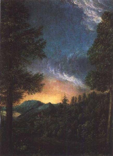 在后来的年月里,克拉纳赫在萨克森(Saxony)成为相当机灵而时髦的宫廷画家,他的成名主要是由于他跟马丁·路德的友谊。但是他在多瑙河地区的小住似乎已经足以促使阿尔卑斯山区居民打开眼界,看到他们周围环境的美丽。雷根斯堡(Ratisbon)的画家阿尔布雷希特·阿尔特多夫尔(Albrecht Altdorfer, 1480?-1538)就曾进入山林研究风霜剥蚀的松树和岩石的形状。他的许多水彩画和蚀刻画,至少还有他的一幅油画(图227),根本不叙述故事,也没有人物。这是一个相当重大的转变。即使是那样热爱自然的希腊人,也小过仅仅画出风景作为田园场面的环境而已(见114页,图72)。在中世纪,一幅画不去明确地图解一个神圣的或世俗的主题,那几乎是不可想像的。只有当画家的技艺本身开始引起人们的兴趣时,画家才有可能出售一幅除了记录他对一片美丽景色的喜爱以外没有其他用意的画。