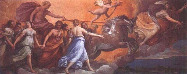 安尼巴莱·卡拉奇和卡拉瓦乔在19世纪曾不合时尚,如今又恢复了应有的地位。但是他们二人给予绘画艺术的巨大推动作用却是我们难以想像的。他们都在罗马工作,当时罗马是文明世界的中心。欧洲各地的艺术家都到罗马去,参加关于绘画的讨论,站在某一方参与派系争论,研究前辈绘画大师的作品,然后带着最新“运动”的消息返回本国——很像现代艺术家以前对待巴黎的情况。根据本民族的传统和个人性格之所近,艺术家会爱上在罗马相互竞争的各种学派中的某一支,而最杰出的人物就会从他们学习的那些罗马艺术运动中发展出个人特色。罗马当时是最有利的地方,从那里可以扫视依附罗马天主教的各个国家里绘画艺术的壮丽全景。许多意大利艺术家在罗马发展出自己的风格,其中最著名的大概是圭多·雷尼(Guido Reni, 1575-1642),他是波洛尼亚的一位画家,经过短暂的踌躇以后,投身于卡拉奇画派。像他的老师一样,他的名声一度高得不可估量(见22页,图7),有一段时期可以跟拉斐尔并列。如果我们看一看图253,就可以理解原因何在。这是雷尼1614年在罗马的一座宫殿画的天花板湿壁画。它表现奥罗拉(Aurora)(曙光女神)和坐在双轮车里的年轻的太阳神阿波罗,双轮车周围是美丽的少女们即时序女神(the Horae)跳着欢快的舞蹈,前面是一个举着火炬的孩子,即晨星(Morning Star)。这幅绚丽的黎明图画如此优雅而美丽,人们能够理解它曾怎样使人回想起拉斐尔和他在法尔内西纳别墅的壁画(见318页,图204)。实际上雷尼的确要他们想起他所追摹的那位伟大的画家。如果现代批评家往往较低地评价雷尼的成就,原因可能就在这里。他们认为,或者害怕,这样努力追摹另一位艺术家已经使雷尼的作品过于不自然,过于有意识地去追求纯粹的美。我们没有必要为此争论。毫无疑问,雷尼的整个处理方式跟拉斐尔不同。对于拉斐尔,我们觉得他的美感和宁静感是自然地从他的整个天性和艺术中流露出来;对于雷尼,我们觉得他是从原则出发而决定这样作画,如果卡拉瓦乔的门徒们能说服他,使他相信自己的路子不对头,他也许就会采用一种不同的风格了。但是,那些原则问题当时已经被提出来,而且已经弥漫于画家的心灵和言谈之中,这个事实却不是雷尼的过错。事实上,那不是任何人的过错。艺术已经发展到这样一个境地,艺术家们不可能不知道对面临的各种方法进行选择。一旦我们承认了这一点,我们就会充分地赞赏雷尼怎样把他关于的美的方案付诸实现,怎样有意地把他所认为的那些低下、丑恶或者不适合他的崇高观念的自然事物统统抛开,又是怎样成功地表现出比现实完美而理想的形式。是安尼巴莱·卡拉奇、雷尼和他的追随者们制订出了按照古典雕像树立的标准去理想化、去“美化”自然的方案,这种方案我们称为新古典派或者“学院派”方案(the neo-classical or "academic" programme),以区别于根本不依靠任何方案的古典艺术。关于新古典派的论争不大可能很快停止,但是没有人否认在新古典派的提倡者中出现了一些大师,通过他们的作品,我们看到了一个纯洁而优美的世界,失去这样一个世界,我们就会感到贫乏。