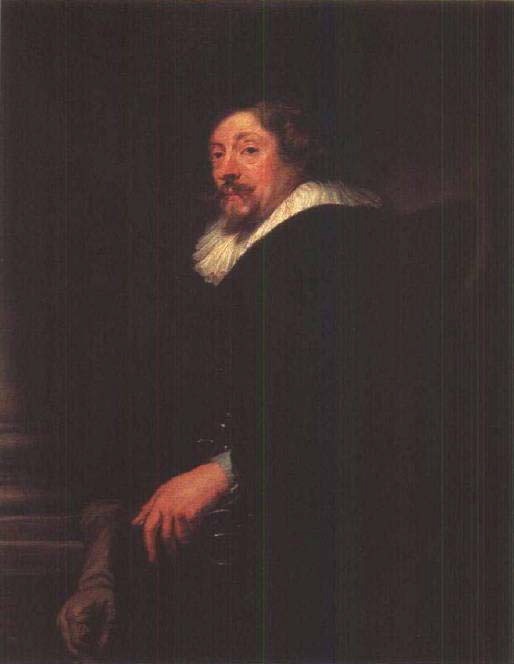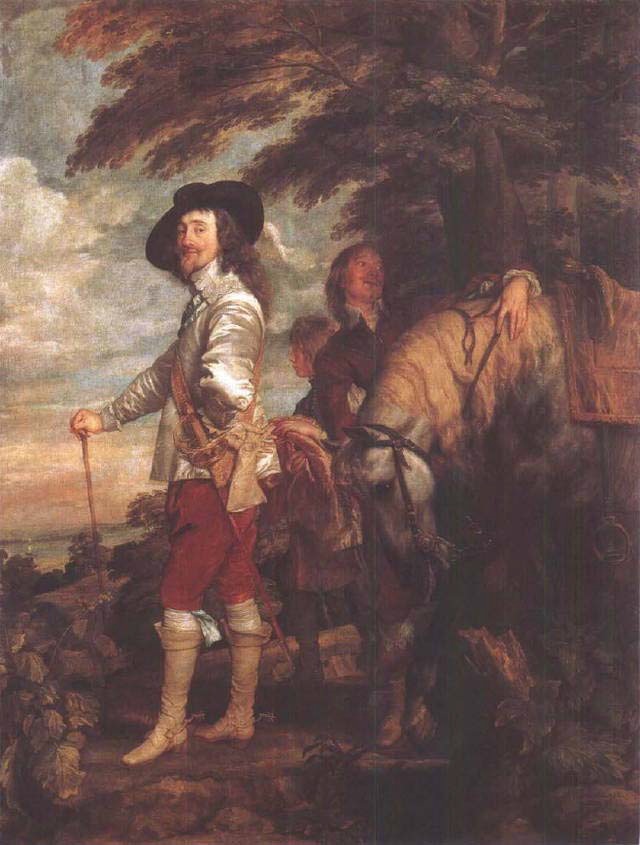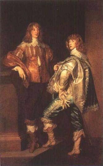 在鲁本斯的著名的学生和助手中,最伟大、最能卓然自立的是凡·代克(Van Dyck, 1599-1641),他比鲁本斯小22岁,是普桑和克劳德·洛兰那一代人。他很快就学会鲁本斯表现事物的质地和外表的全部绝技,不管是丝绸还是人体肌肤,但是他跟师傅在气质和心情方面大不相同。凡·代克似乎不是健康的人,他的画经常流露无精打采和略带忧郁的心情。也许就是这种特点引起热那亚的苦行贵族和查理一世随从中的王党成员的共鸣。1632年,他当上了查理一世的宫廷画家,名字也英国化了,叫安东尼·凡代克爵士(Sir Anthony Vandyke)。我们应该感谢他给那个上流社会作了艺术家的记录,记录下无所忌惮的贵族姿态和追求宫廷优雅风度的时尚。他画的查理一世出征打猎时刚刚下马的肖像(图261),表现这位斯图亚特(Stuart)王朝的君主渴望永垂青史的形象:一个无比优雅、有无可置疑的权威和受过高等教养的人物,是艺术的赞助人,是神授王权的维护者,是一个无需用外部服饰来标志权力以提高他的天然尊贵的人。一位画家能够这样完美地在肖像画中画出这些特点,无疑要受到社会的急切追求。事实上,凡·代克接到许许多多请求画肖像的委托,像他师傅鲁本斯一样,已经独力难支。他也有许多助手,助手们按照放在化装假人上的服装画好被画者的服饰,甚至头部也不总是完全由他动笔。那些肖像画中有一些近乎后世美化的时装假人,令人不舒服。无疑凡·代克开创了一个危险的先例,对肖像画害处很大。但是这一切无损他的最佳肖像画的伟大之处,也不能使我们忘记他比其他人更有力地把理想中的贵族血统的高贵和绅士派头的潇洒(图262)形象化,这丰富了我们心目中的人物形象,这种贡献丝毫不逊于鲁本斯画的生气洋溢的强健有力的形象。