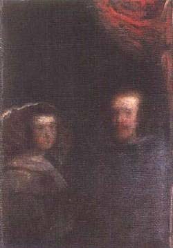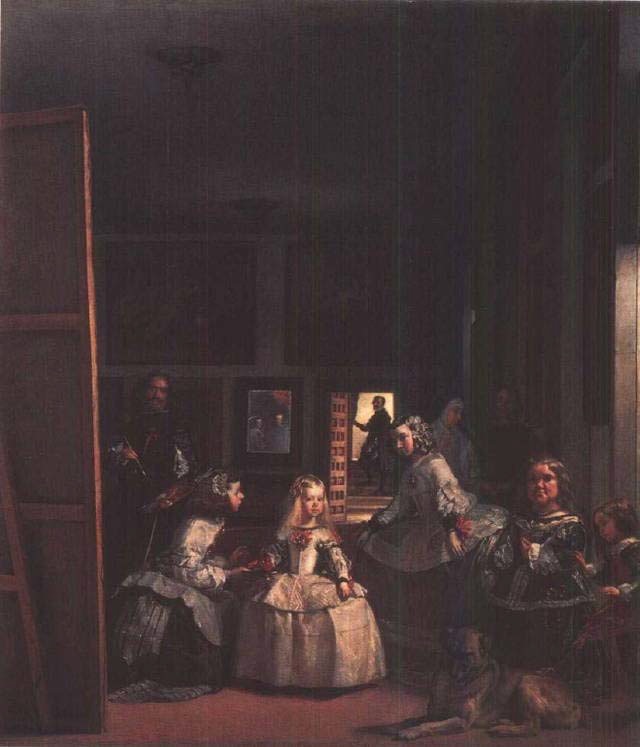这到底是什么意思呢?我们也许永远不得而知。但是我想把它设想为远在照相机发明之前委拉斯开兹所捕捉住的现实的一个瞬间。大概公主被带到御前消除国王夫妇静坐画像的烦闷,而国王或是王后对委拉斯开兹说这就是值得一画的题材。君主的话总是被当作命令,我们可以把这一幅杰作的出现归因为君主有这么一个偶然的愿望,而这个愿望只有委拉斯开兹才有能力转化为现实。