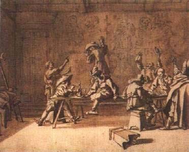 17世纪罗马的一家艺术家的小酒馆,墙上画满了漫画