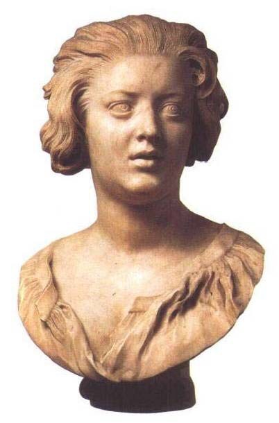 这种舞台化装饰的最高艺术主要是由艺术家吉安·洛伦佐·贝尔尼尼(Gian Lorenzo Benini, 1598-1680)创造的。贝尔尼尼跟博罗米尼是同代人,他比凡·代克和委拉斯开兹大l岁,比伦勃朗大8岁。跟这些艺术家一样,他也是一位无比的肖像艺术家。图284便是他的一件青年女子胸像,具有贝尔尼尼的最佳之作的一切新颖和不落常套的特点。我上一次在佛罗伦萨博物馆看到它的时候,一缕阳光正好闪耀在这座胸像上,整个人像似乎呼吸着苏醒过来。我们确信这必定是被描绘者最独特的表情。在表选面部表情方面,贝尔尼尼的艺术大概是至高无上的。像伦勃朗运用他对人物行为的深邃认识一样,贝尔尼尼运用他描绘面部表情的技术赋予他的宗教体验以可见的形式。