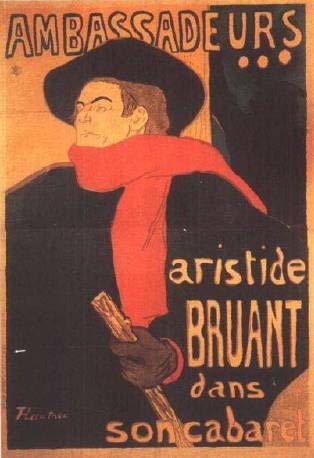 这幅画让我们想到招贴画绝非偶然,因为,事实证明,欧洲从日本学来的方法特别适合广告艺术。在19世纪进入20世纪之前,德加(见526页)的天才追随者亨利·德·图卢兹-劳特累克(Henri de Toulouse - Lautrec, 1864-1901)就采用了这种简洁的手段去创造新型的招贴画艺术(图361)。
