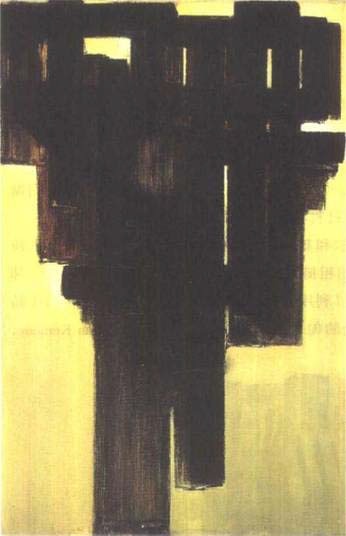在前一章中我提出一个论点,即人们不是一定需要接受艺术家的理论才能欣赏他的作品。如果一个人有耐心、有兴趣去多看看这一类绘画,最终就必然会比较喜欢其中的某些画,而不那么喜欢另外一些画,而且逐渐会意识到那些艺术家所追求的问题。甚至把美国艺术家弗朗兹·克兰(Franz Kline, 1910-1962)的一幅画跟法国tachiste(斑点派画家)皮埃尔·苏拉热(Pierre Soulages, 1919-)的一幅画比较一下,也不无教益(图394、图395)。克兰把他的画叫做“白色形体”,这一点很有特色。他显然要求我们不仅注意他的线条,还要注意被线条以某种方式改变了形状的画布。因为,尽管他的笔画简单,但是它们的确产生了一种空间布局的印象,仿佛下半部正在向中心退去。不过我认为苏拉格的画显得更有趣。他的强劲的笔触的层次变化也产生了三维空间的印象,然而除此以外,在我看来颜料的性质却显得更为悦目——不过这些差别很难在插图中表现出来。甚至这种不准照相复制的性质也可能恰恰是吸引某些当代艺术家的地方。在这样一个世界中,许许多多东西都是机制的、标准化的,他们希望得到一种心理满足,觉得他们的作品实际上是独一无二的,是他们亲手制作的东西。有一些人爱画巨幅作品,仅仅那规模之大就足以产生一种冲击力,而在插图中这种规模是无法传达的。然而最重要的是,许多艺术家神往于他们所谓的“质地”(texture),一种物质感,光滑或者粗糙,透明或者稠密。所以他们抛开普通颜料,改用别的材料,例如,泥团、锯末,或者砂子。