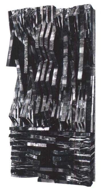 这就是对施威特尔和其他达达主义者的拼贴之作再次感兴趣的原因之一。麻袋布的粗糙性,塑料的光泽性,锈铁的粒面纹理,都可以用新颖的方式加以利用。那些制品介于绘画作品和雕刻作品之间。于是,住在瑞士的匈牙利人佐尔坦·克梅尼(Zoltan Kemeny, 1907-1965)就用金属组成他的抽象作品(图396)。这类作品能使我们认识到我们的城市环境给予我们各种各样意想不到的视觉和触觉感受,于是就可以声称这些作品对于我们的作用就跟风景画对18世纪的鉴赏家的作用一样,当时那些风景画使鉴赏家们得以在自然的本来面目中发现了“如画”之美(见396-397页)。