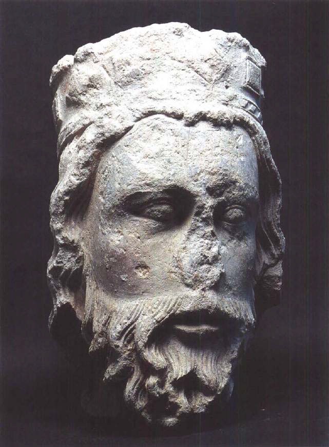 显然,1230年前后为巴黎圣母院制作的这些雕像的损失,过去和现在都给我们的知识造成一块空白——所以,当1977年4月工人们在巴黎市中心给一所银行挖地基时,偶然发现了一堆碎块埋在地下,至少有364块,显然是18世纪遭到破坏后被抛在那里的(图413),艺术史家才理所当然地对这项发现欣喜不已。虽然这些雕像的头部损坏严重,但是它们仍然值得观察和研究,以追寻它们的技艺以及它们的高贵而镇静的风度的遗韵,那使人想起其前的沙特尔主教堂的雕像(见191页,图127)和大致同期的斯特拉斯堡主教堂的雕像(见193页,图129)。相当奇怪,它们的损坏反而有助于保留下我们已在另外两处提到过的一个特点——它们在被发现的时候也显露出曾经着色和涂金的迹象,倘若一直暴露光照的话,那些印迹也许会消失的。实际情况可能是:跟中世纪的许多建筑(见188页,图124)一样,中世纪雕刻方面的其他丰碑杰作原来也是着色的;跟我们对希腊雕刻的观念一样,我们对中世纪作品模样的观念很可能也需要加以修改。然而,时时修改我们的观念不正是研究历史所感到的种种激动之一吗?