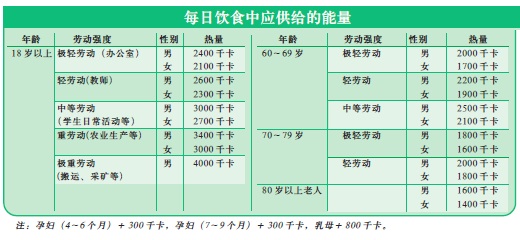 所谓营养均衡,其衡量的一个主要标准就是食物对人体热量的供给量是否适宜。缺少热能会导致血糖下降、无力,严重者甚至会影响人体免疫力,而热能过多则又易发胖,引起多种疾病。因此在配餐中确定热量的供给比例十分重要。三大营养素提供给人体总热量的百分比应该为:蛋白质10%~15%、脂肪20%~25%、碳水化合物60%~70%。这些热量在一日三餐中也应合理分配,以早餐占30%,午餐占40%,晚餐占30%为宜。按此比例搭配每一餐的各类食品,使其所含营养全面、比例合理,均衡地满足不同人员的需要,这对实现营养平衡具有十分重要的意义。
