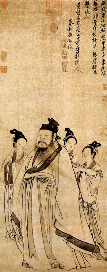 此图表现东晋名士谢安栖隐东山、放情山水、携陡出游的情景。此画中,谢安清须飘逸,气宇轩昂,三伎跟随其后。线条流畅舒放’劲健有神,充分地表现了谢安逍遥自适的形象。
