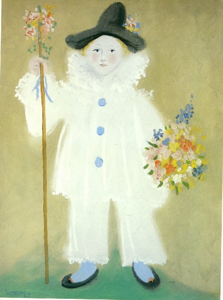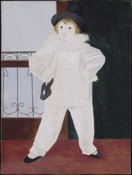 《扮丑角的保罗》创作于1925年,画中的保罗出生于1921年,是毕加索和第一任妻子奥尔加的孩子,也是毕加索绘画中常见的模特儿。画作中保罗身穿有着夸张领口的白色小丑服,头戴尖帽,手持面具。毕加索以轻快的笔调勾画出保罗的表情以及简洁利落的身形,构图单纯而富有装饰性,运用白色、黑色、红色塑造出强烈的对比。