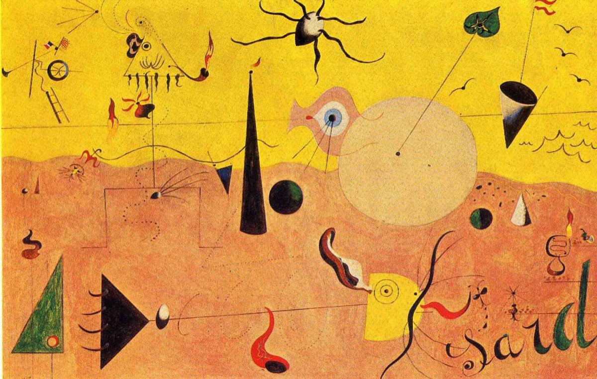 加泰罗尼亚画家胡安·米罗(1893-1983)在巴塞罗那学习艺术时,曾被蒙上双眼,然后告诉他在画素描之前,先要触摸要画的物体,这样可以理解形状。米罗在自己的祖籍——蒙特洛伊(Montroig)乡村,总是可以找到灵感来源,其中就有中世纪的湿壁画。当地的动植物种群以及其他自然现象,从简单的植物到宇宙中的太阳和星星,常常出现在他的绘画和雕塑中,而且用鲜亮的色彩、弯曲而锋利的笔触绘制,这也成为了他的作品的特点。